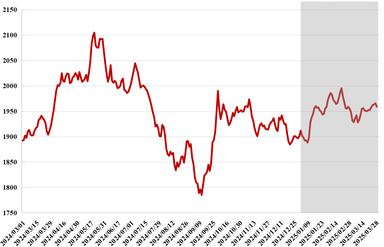 从中证监控中国农产品期货指数和中证监控中国工业品期货指数来看,2025年一季度工业品和农产品走势分化明显。