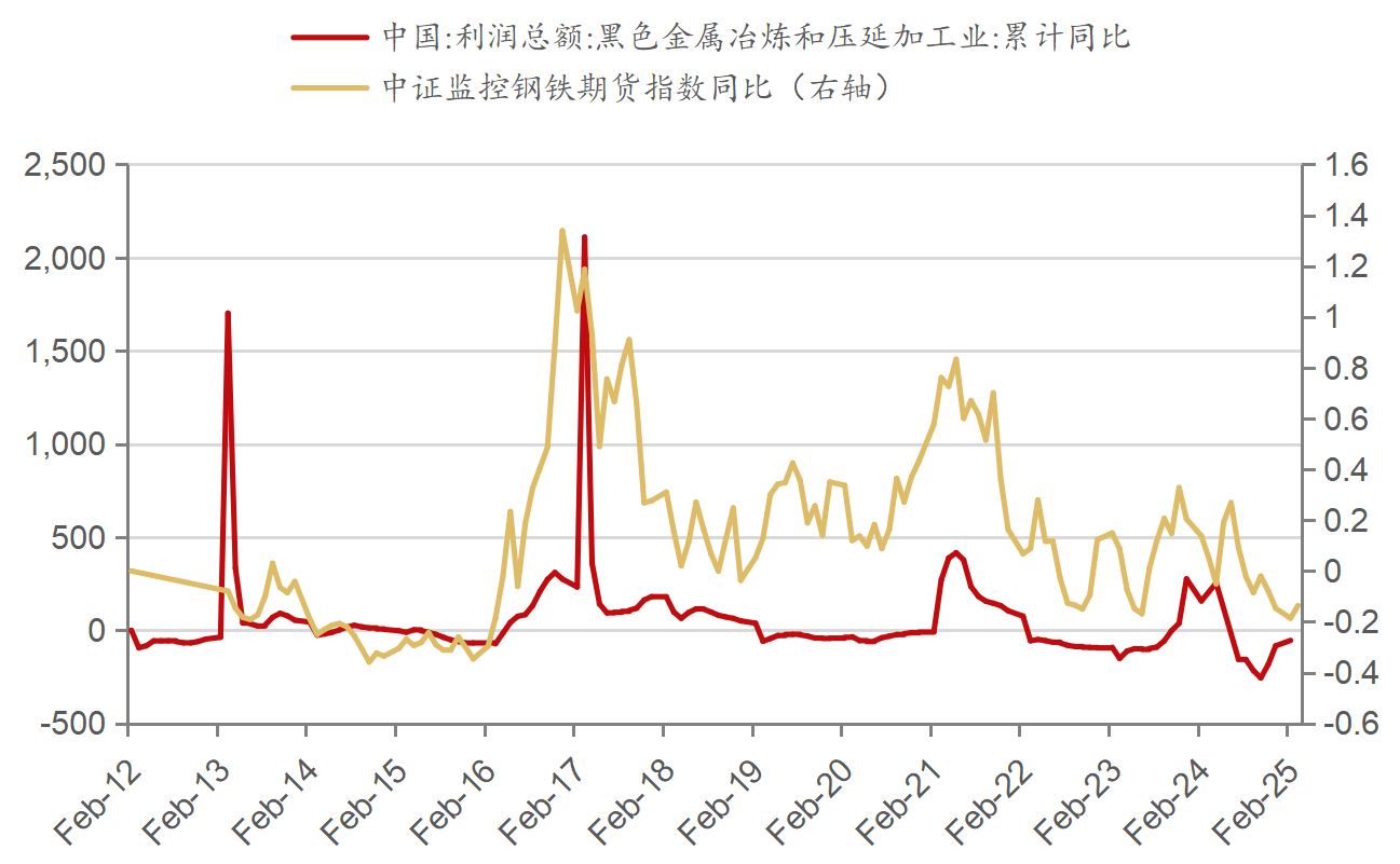 图为中证监控钢铁期货指数同比与对应行业利润总额