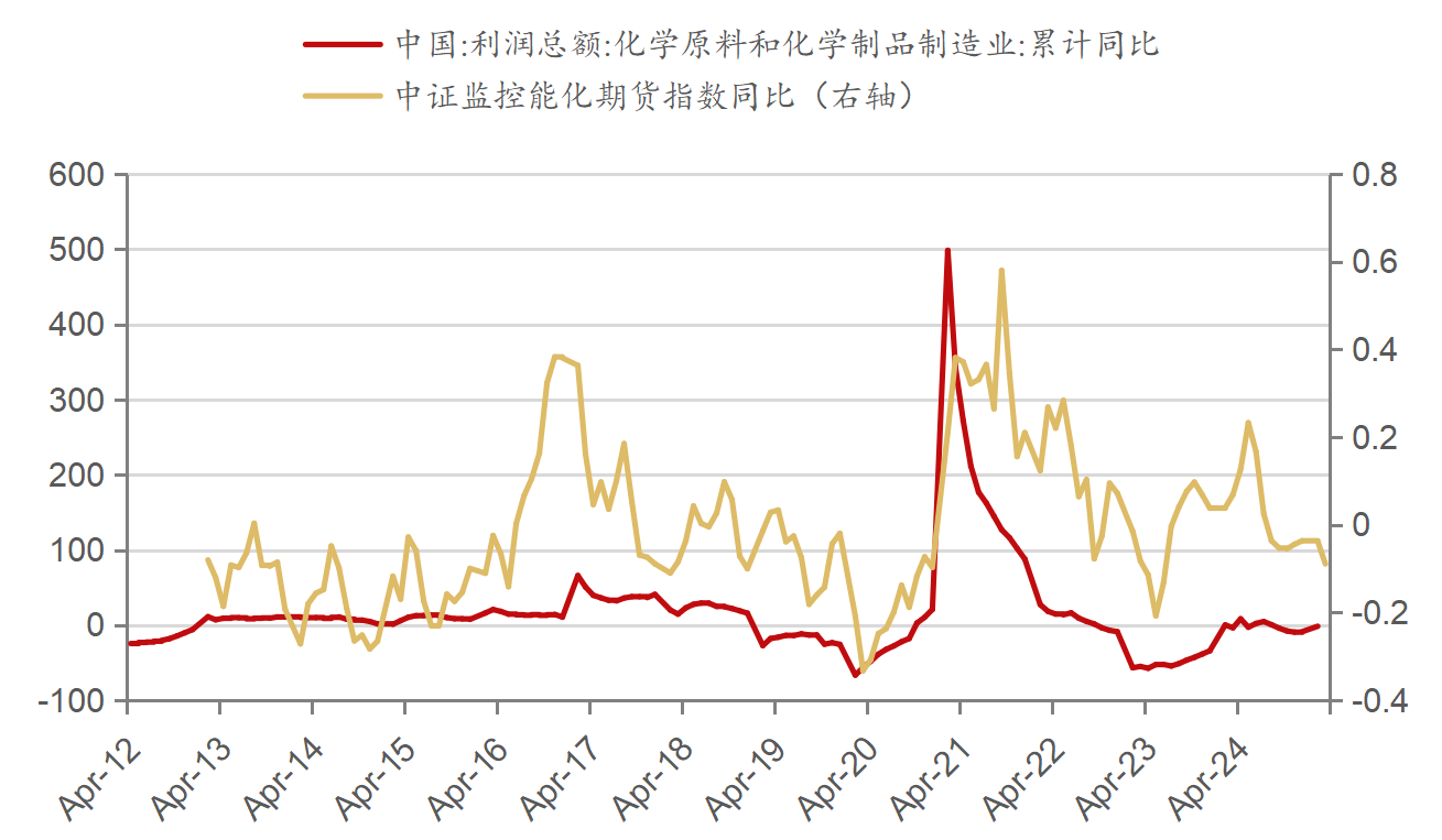 化工产业方面,从利润总额的同比序列和能化指数的同比序列看,化工产业已经从2023年二季度的底部逐步走出,但阶段性压力依然存在,企业需保持稳健经营。