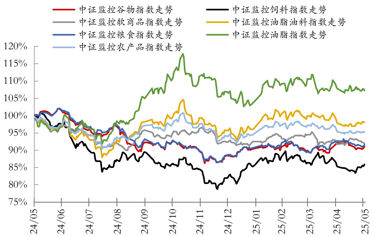 二、农产品版块指数走势分化,饲料、油脂及软商品录得正收益