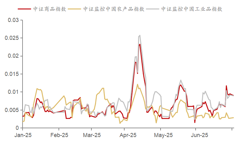 图为2025年上半年商品指数波动率