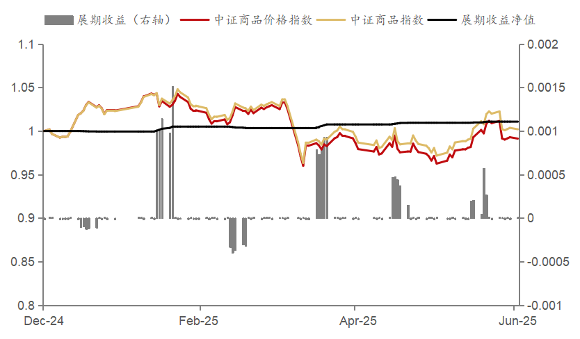 图为2025年上半年商品指展期收益