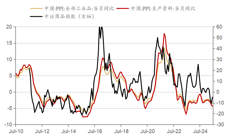 图为中证商品指数同比与PPI同比的历史走势