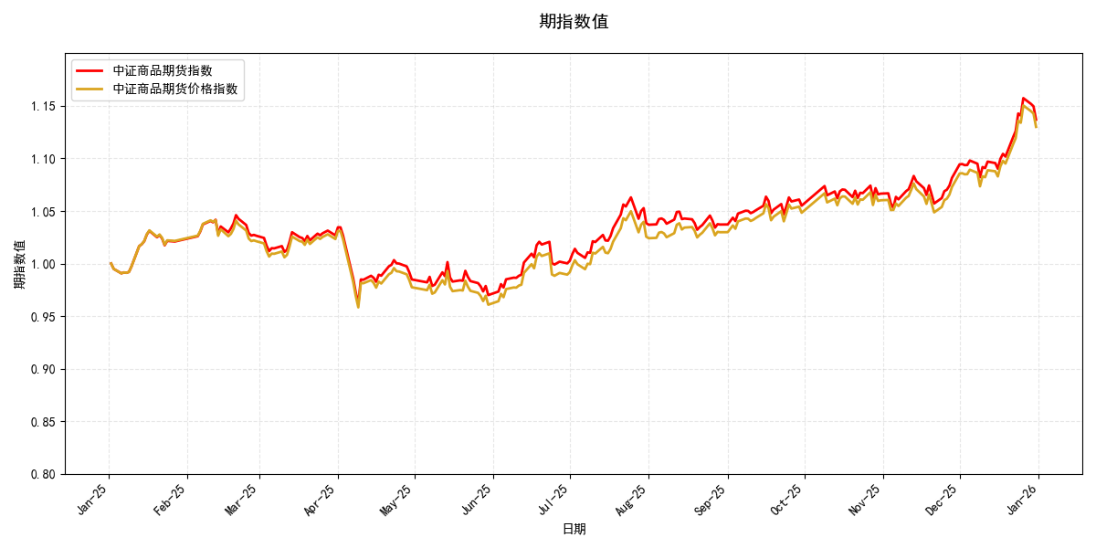 图为中证商品指数2025年展期收益