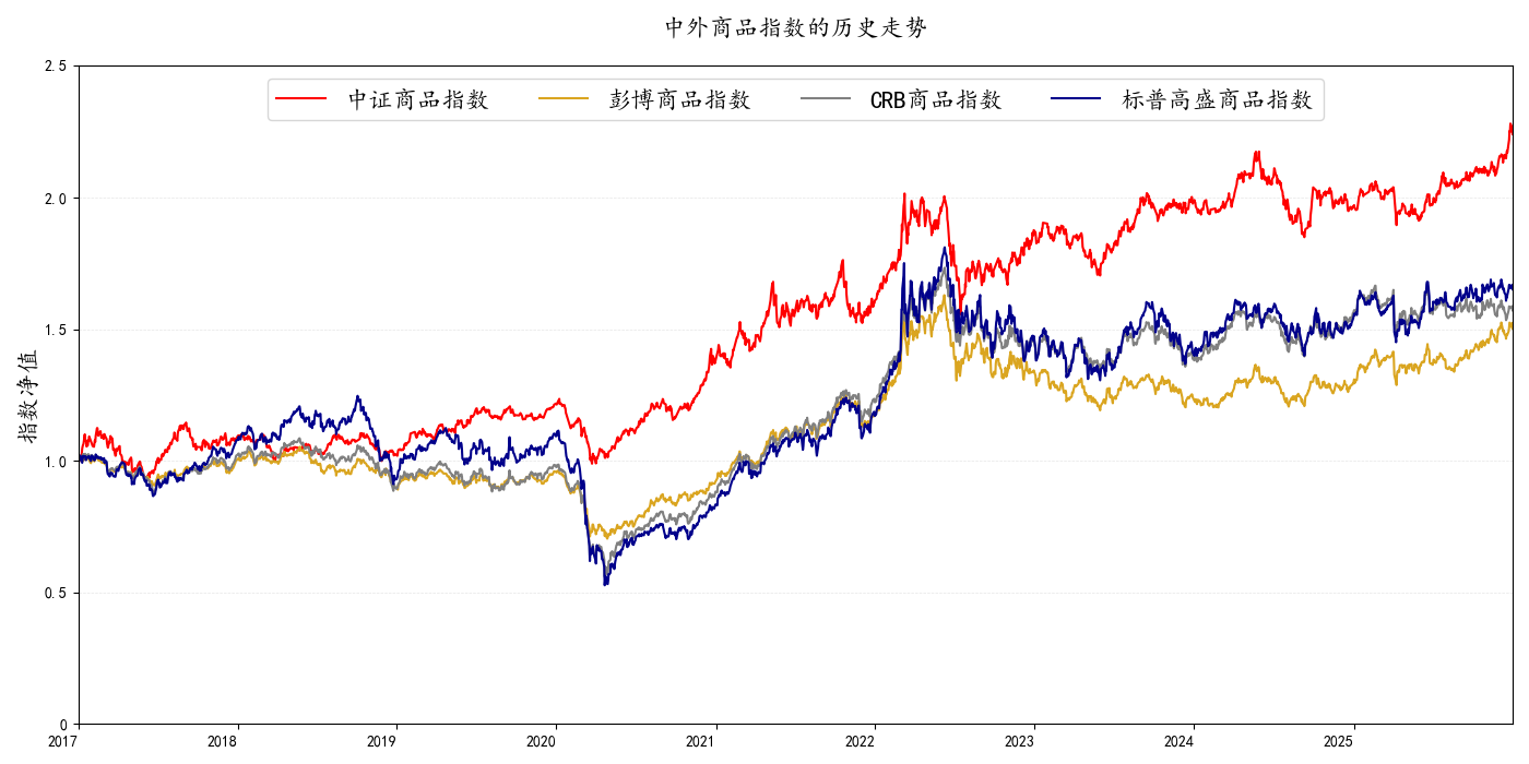 图为中外商品指数的历史走势