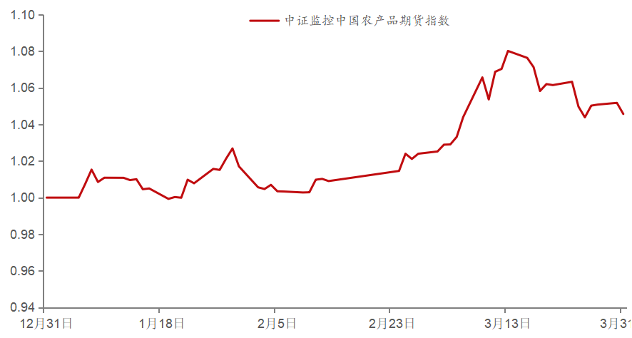 一季度中证监控中国农产品指数上涨4.57%,呈现品种分化、重心上移格局。