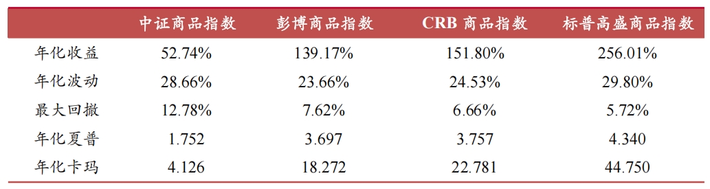 一季度海外商品指数涨幅显著高于国内,标普高盛商品指数因能源权重更高,表现领跑;中证商品指数涨幅相对偏低,最大回撤偏高。但中长期看,中证商品指数在中国需求定价、政策敏感度、回撤控制上具备比较优势,适合作为配置国内产业周期的核心工具。