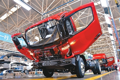 能源化工产业与老百姓衣食住行息息相关。图为位于山东省日照市五莲县的五征集团飞碟汽车总装车间流水线在生产新能源汽车。新华社记者 郭绪雷摄
