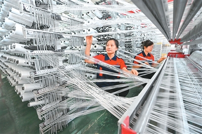 山西宇泽包装制品有限公司生产的集装袋广泛应用于化工、医药、食品、冶金等多个领域。图为该公司生产车间内,工人正在赶制订单产品。常 奇摄(人民视觉)